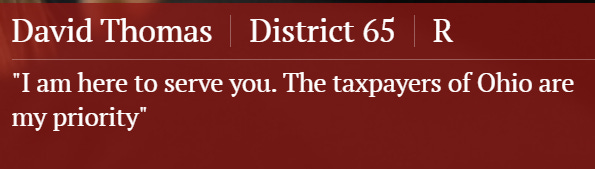 Got it? These are the three elected officials whose responsibility is to look out for people in our community. In fact, here’s the main quote Rep. Thomas highlights on his Ohio House webpage: